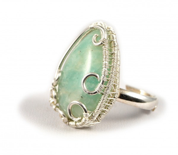 Amazonit Srebrny pierścionek z amazonitem, regulowany, ręcznie wykonany, idealny prezent