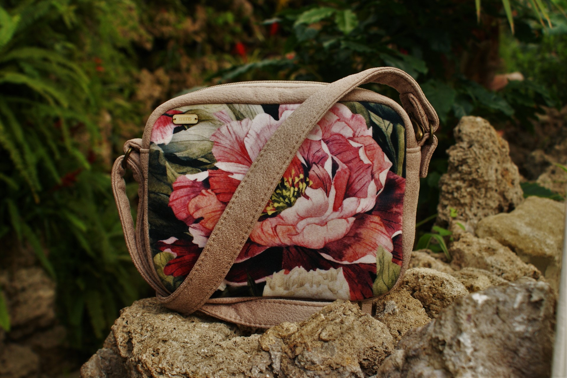 Zgrabna torebka wykonana z nubuku z delikatną fakturą oraz drukowanego weluru. Niezwykle elegancka, pasująca niemal do każdej stylizacji.