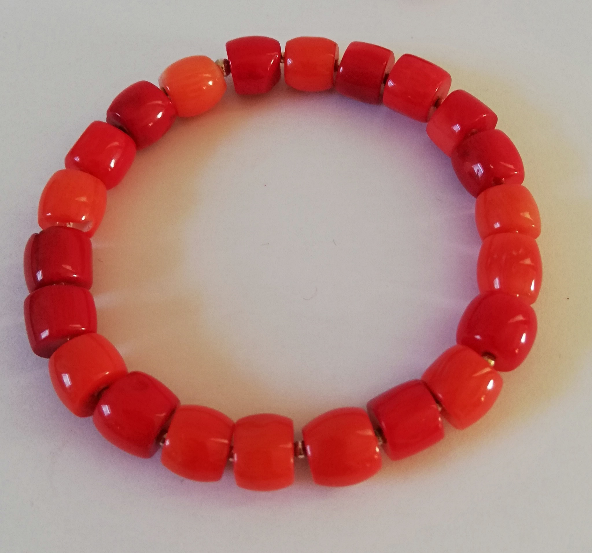 Kolory przechodzą od czerwieni dopomarańczowego, z minimalnymi przebarwieniami , typowymi dla naturalnego korala.