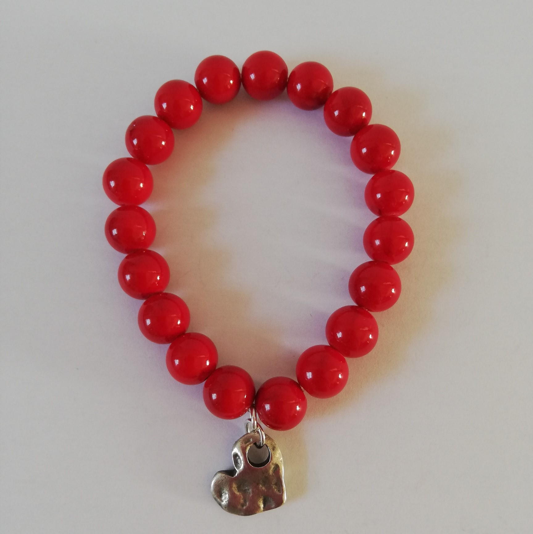 Bransoletka z kulek jadeitu 10mm, na gumce, z doczepionym serduszkiem z metalu antyalergicznego.