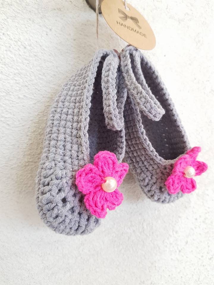 Śliczne bawełniane baletki dla maleństwa, ręcznie robione. Długość stópki 10 cm czyli rozmiar 16. POLECAM! Świetny pomysł na prezent z okazji narodzin.