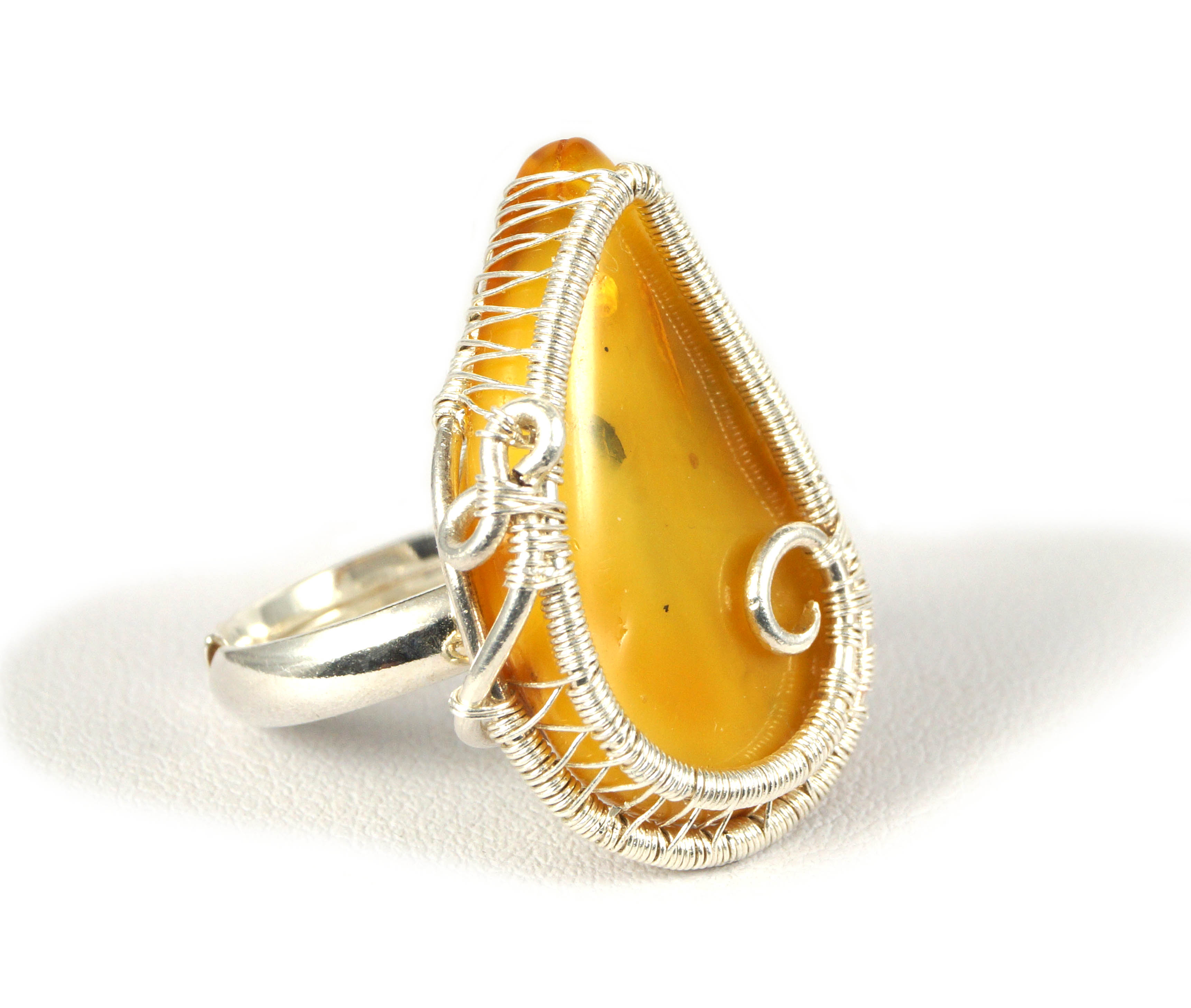 Bursztyn bałtycki, srebrny pierścionek z bursztynem, regulowany, ręcznie wykonany na prezent dla niej