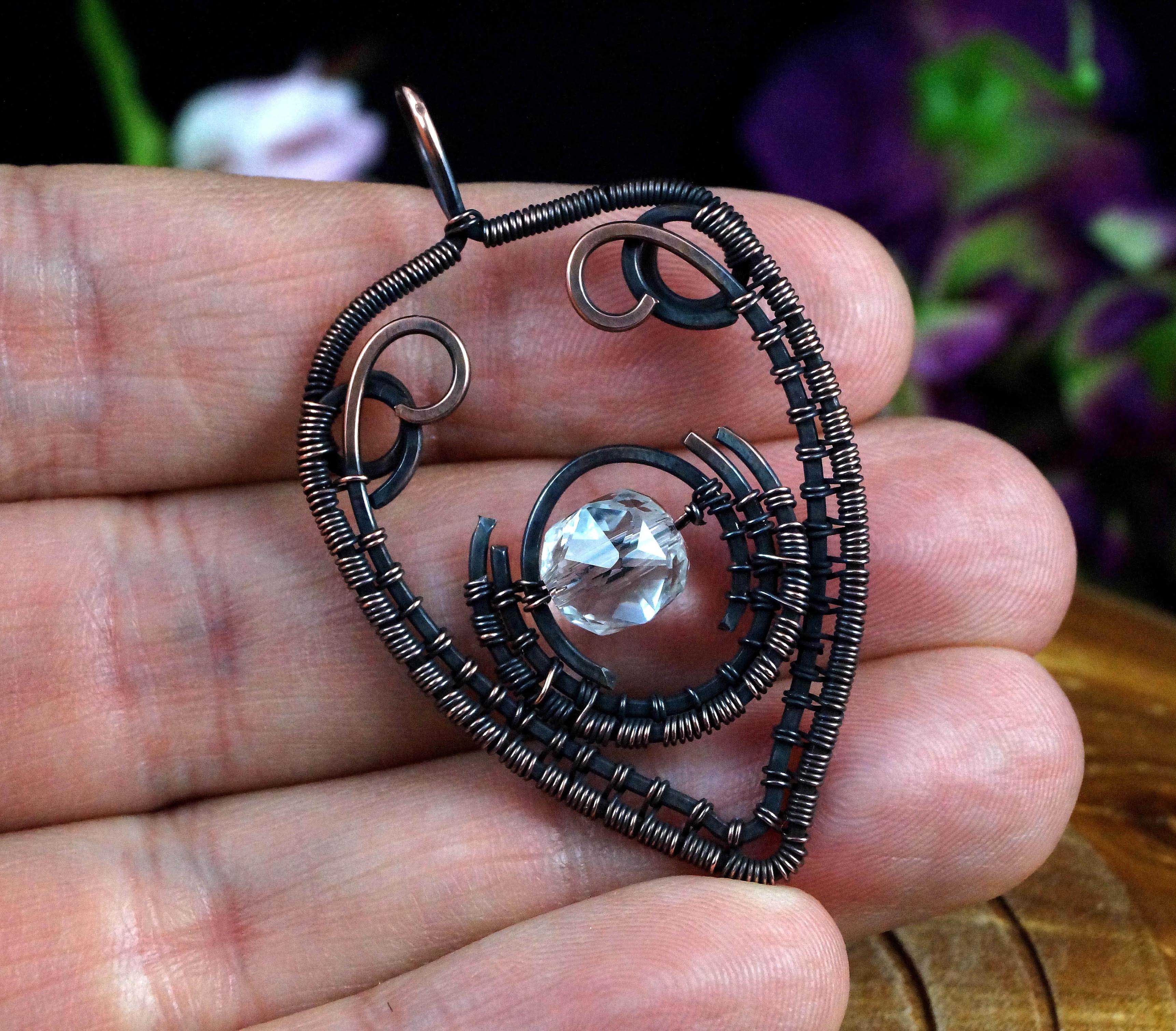 Cyrkonia, miedziany wisior z cyrkonią boho, ręcznie wykonany niepowtarzalny prezent