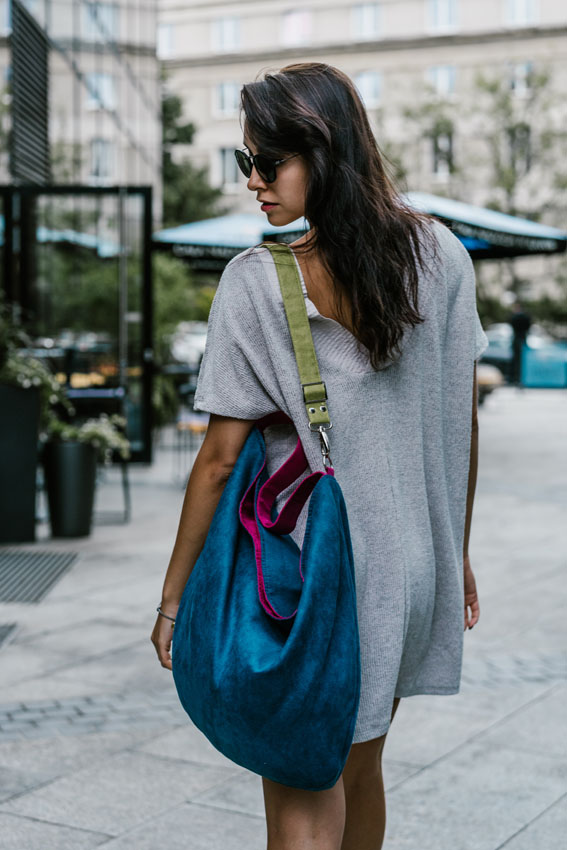 Granatowa, zamszowa torba w kształcie łódki do noszenia na ramieniu na krótkiej rączce lub na długim pasku na skos, jak listonoszkę. Torba worek jest bardzo pojemna, idealna na co dzień, np. na zakupy lub jako torba do pracy. Doskonale sprawdzi się jako torba weekendowa. Zmieścisz w niej ubrania na zmianę i kosmetyczkę – doskonała torba na krótkie wyjazdy. Świetna również jako bagaż podręczny. Idealna torba dla kobiet lubiących prostotę i wygodę. Mocna tkanina jest bardzo trwała, odporna na tarcie i wilgoć. Torebkę bardzo łatwo utrzymać w czystości.