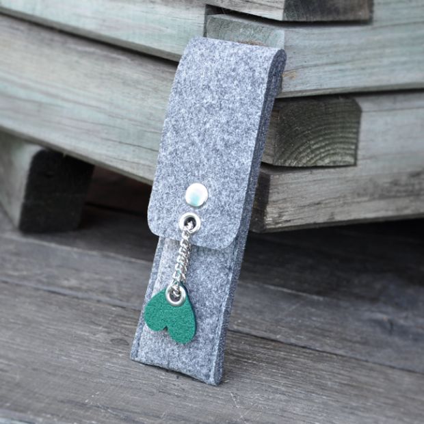 Etui na długopisy i ołówki - szare z zielonym sercem