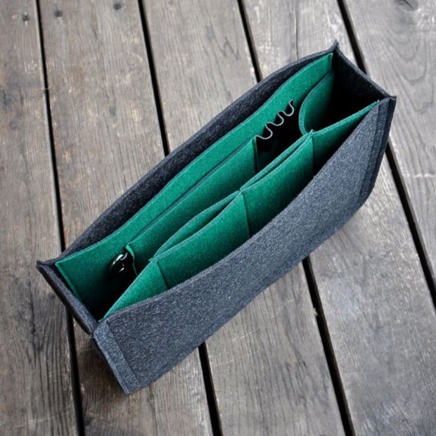 Filcowy organizer do torebki - zielone wnętrze