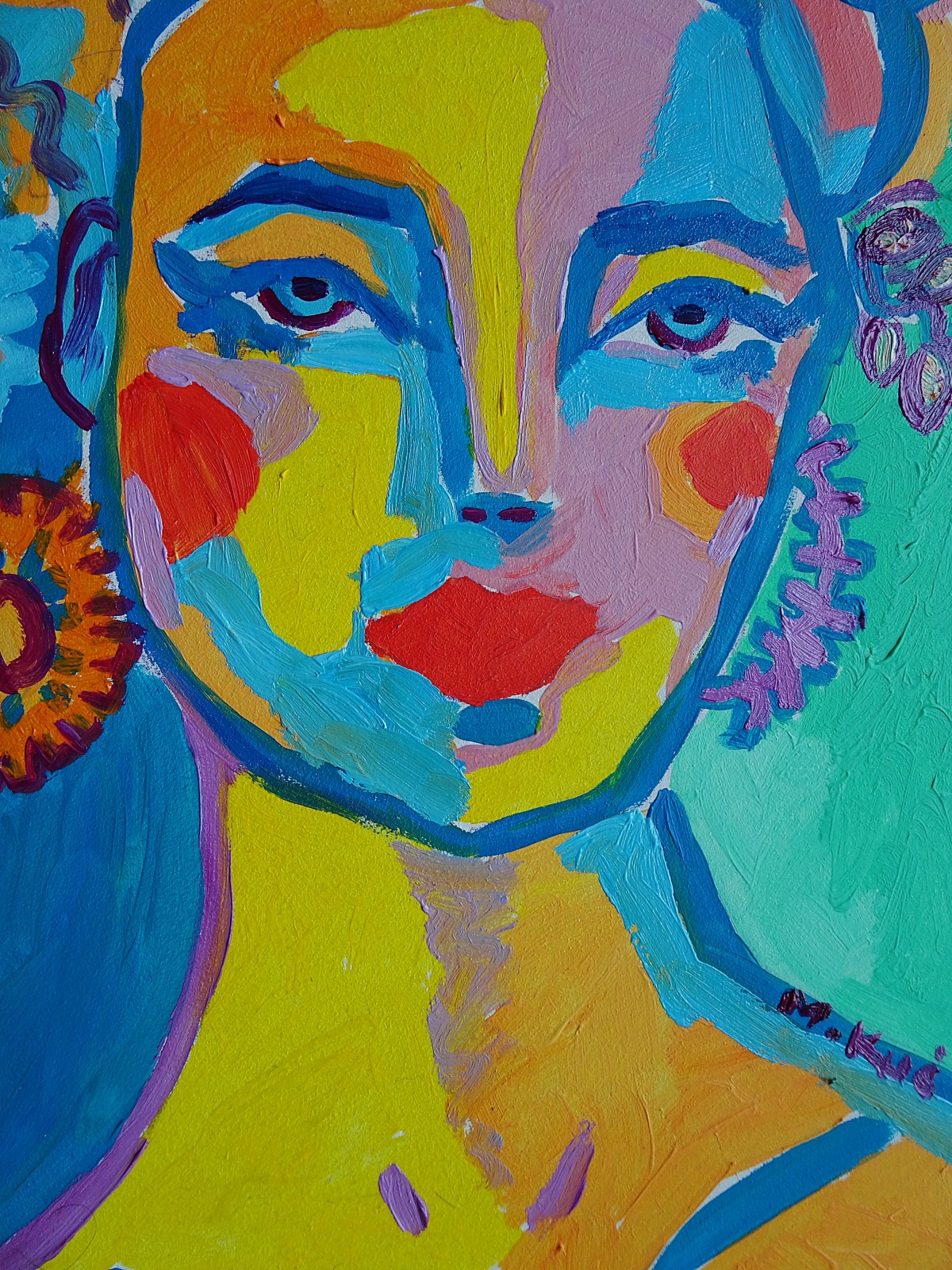 Obraz namalowany akrylami na płycie o wymiarach: a4, 21/29,7 cm, sygnowany z przodu. Jest to moja autorska kompozycja. Świetnie może być eksponowany w nowoczesnych wnętrzach o stonowanej kolorystyce. Swoimi barwami może rozjaśnić takie wnętrza, w oświetleniu dziennym, jak i sztucznym.
