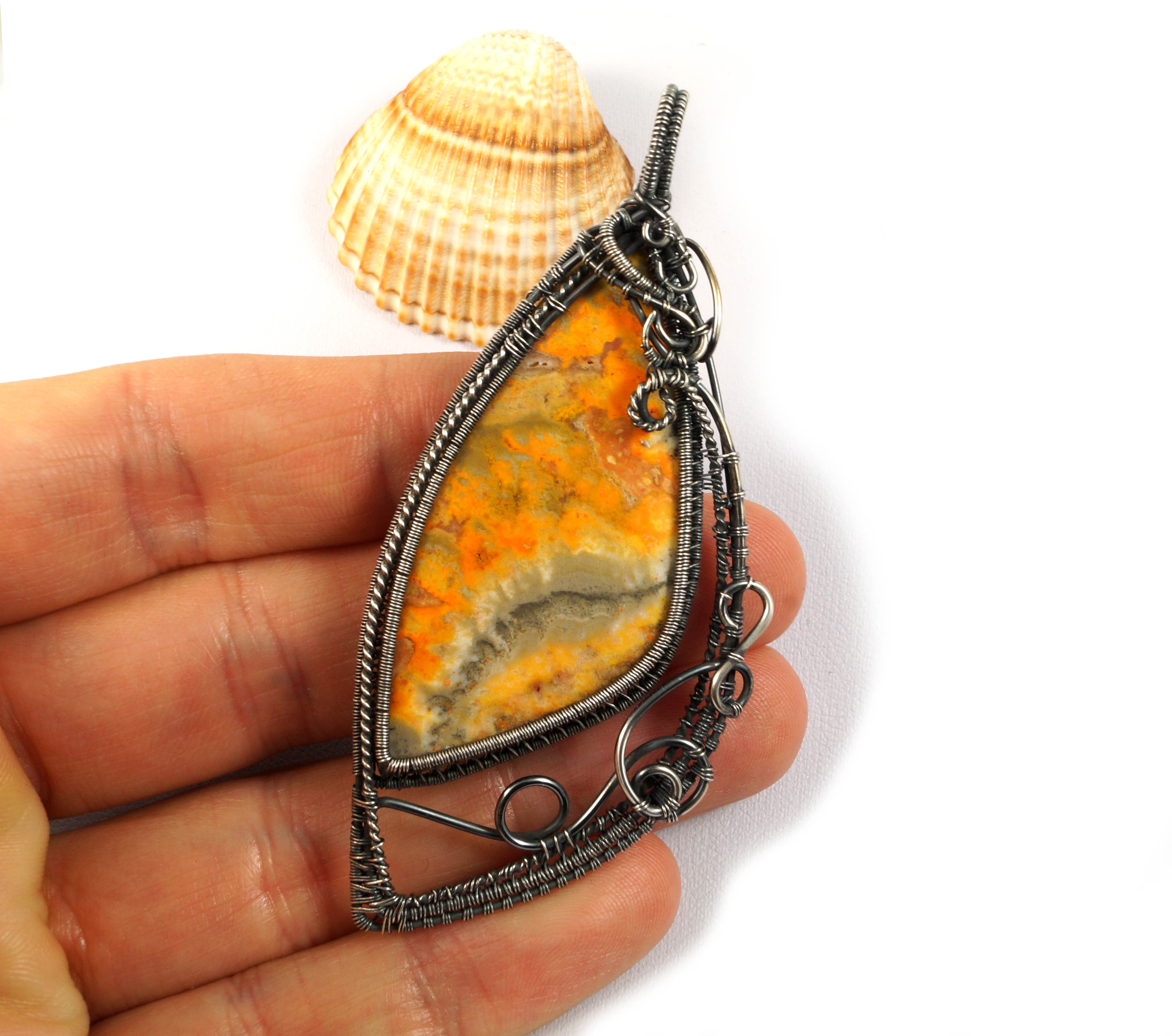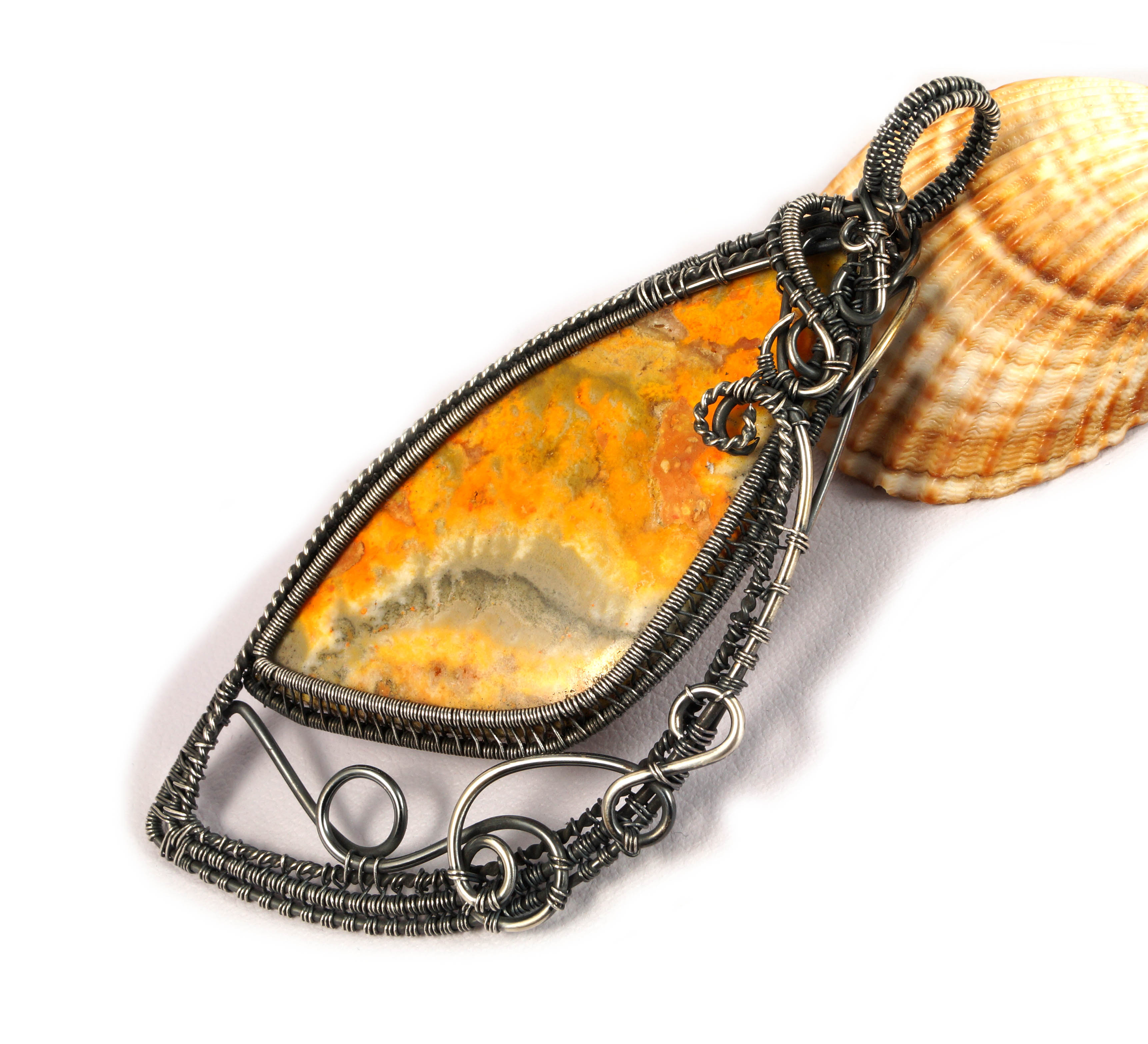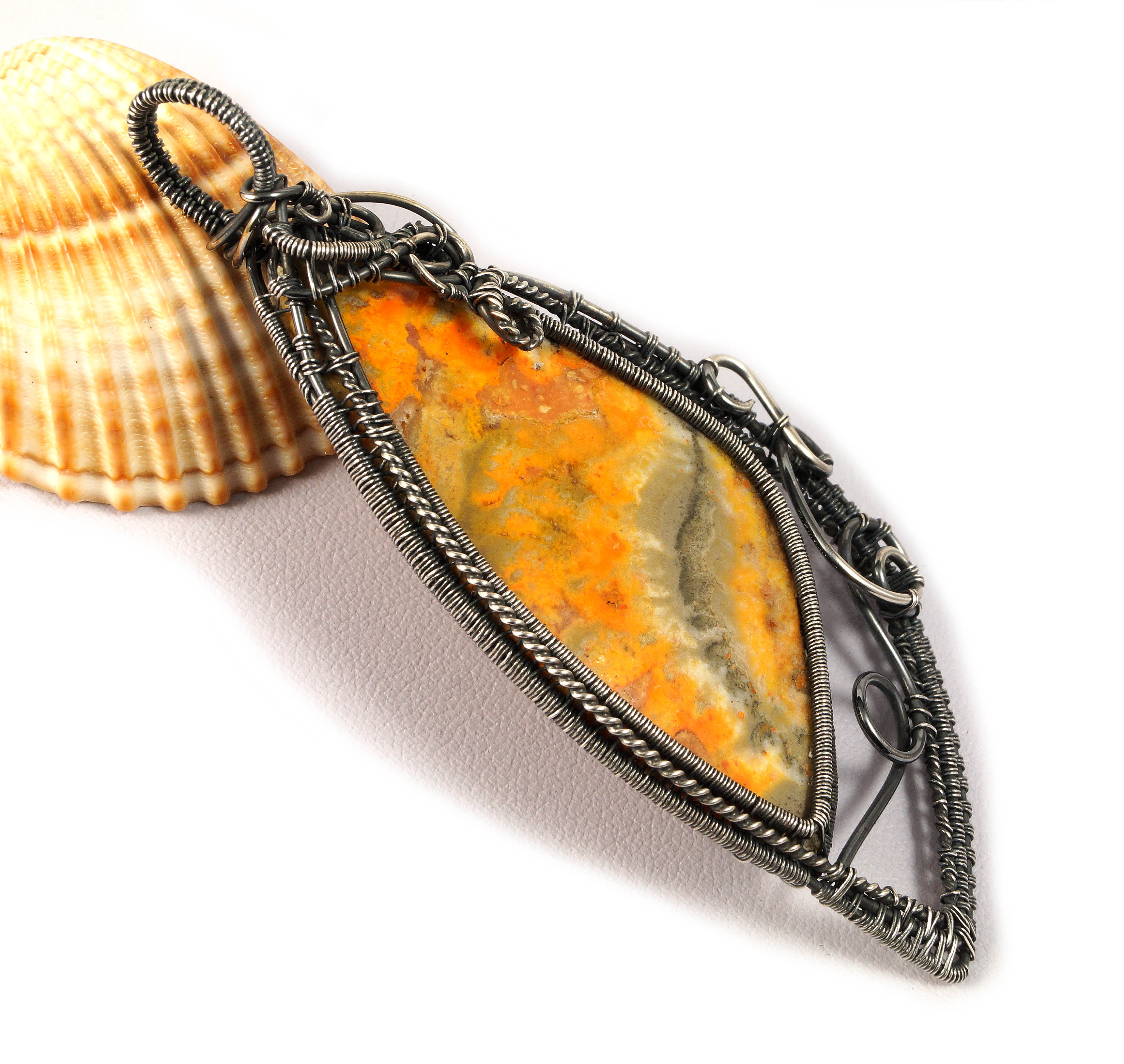 Wisior wykonany przeze mnie od podstaw bardzo pracochłonną i precyzyjną techniką wire-wrapping ze srebra próby 925, 930 oraz 999.