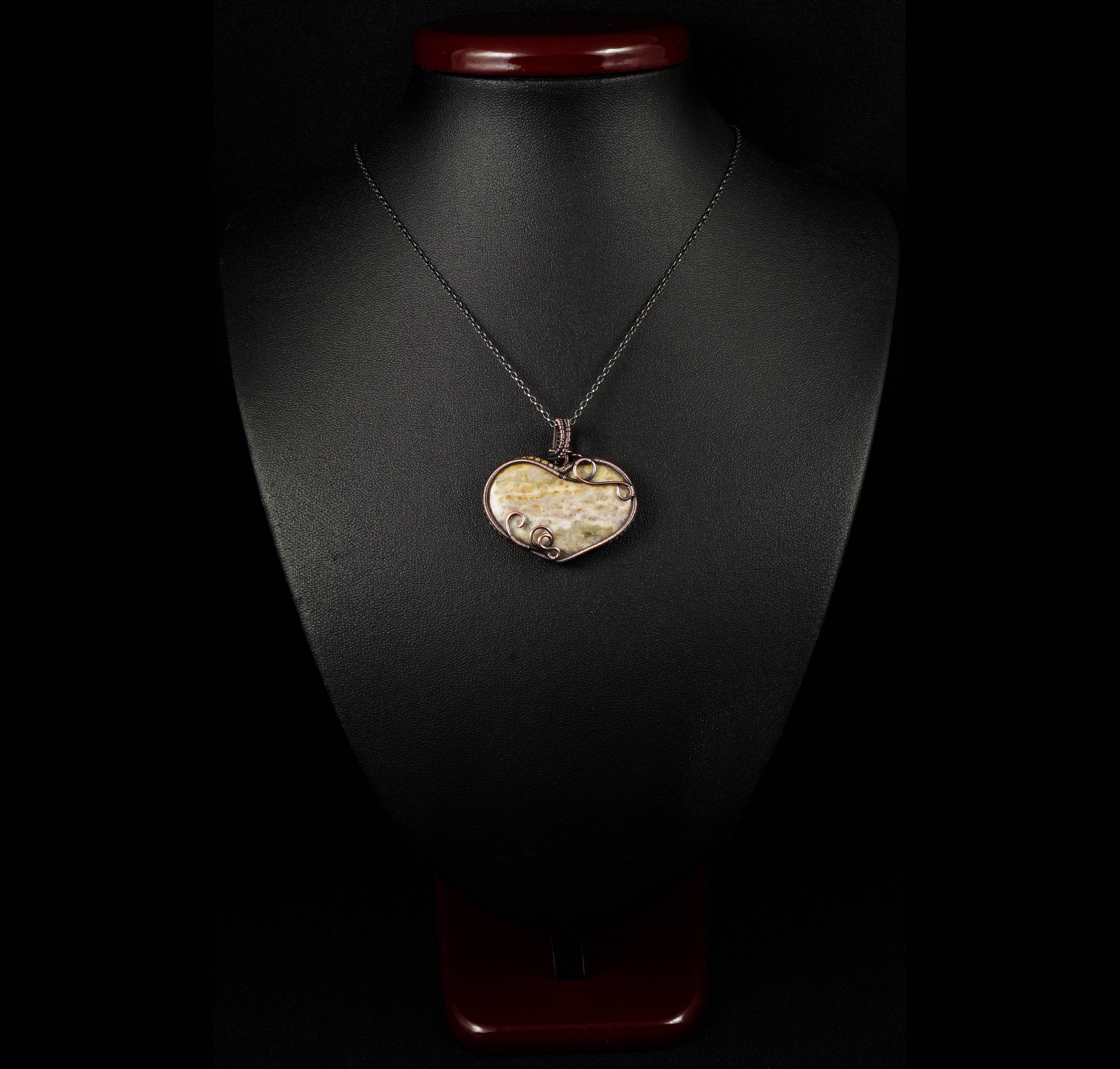 Unikatowy, misternie pleciony wisior z plastrem jaspisu. w kształcie serca.