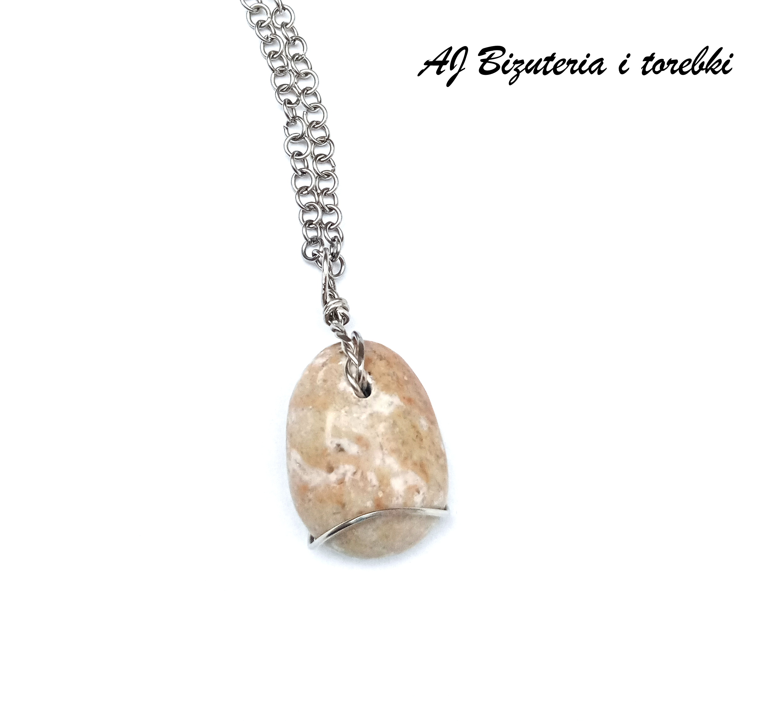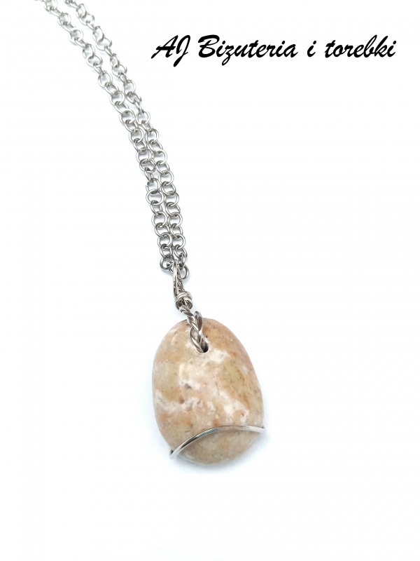 Wisiorek z kamieniem naturalnym, oszlifownym i wypolerowanym. Całość ubrana w stal chirurgiczną i zawieszona na łańcuszku.