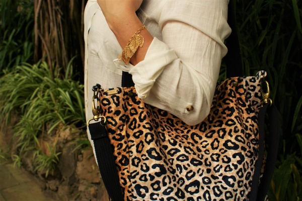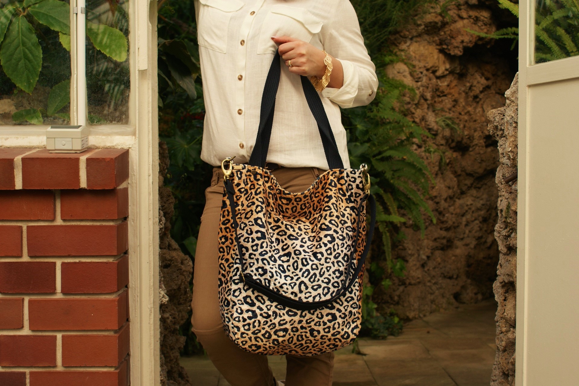 Zgrabna i bardzo pojemna torba (swobodnie mieści format A4 - nawet teczkę) wykonana z miękkiego weluru oraz bawełnianych pasków. Długie grube uszy oraz nietypowe dno (kształt X) sprawia, że torba miękko się układa i dostosowuje kształtem do właścicielki.