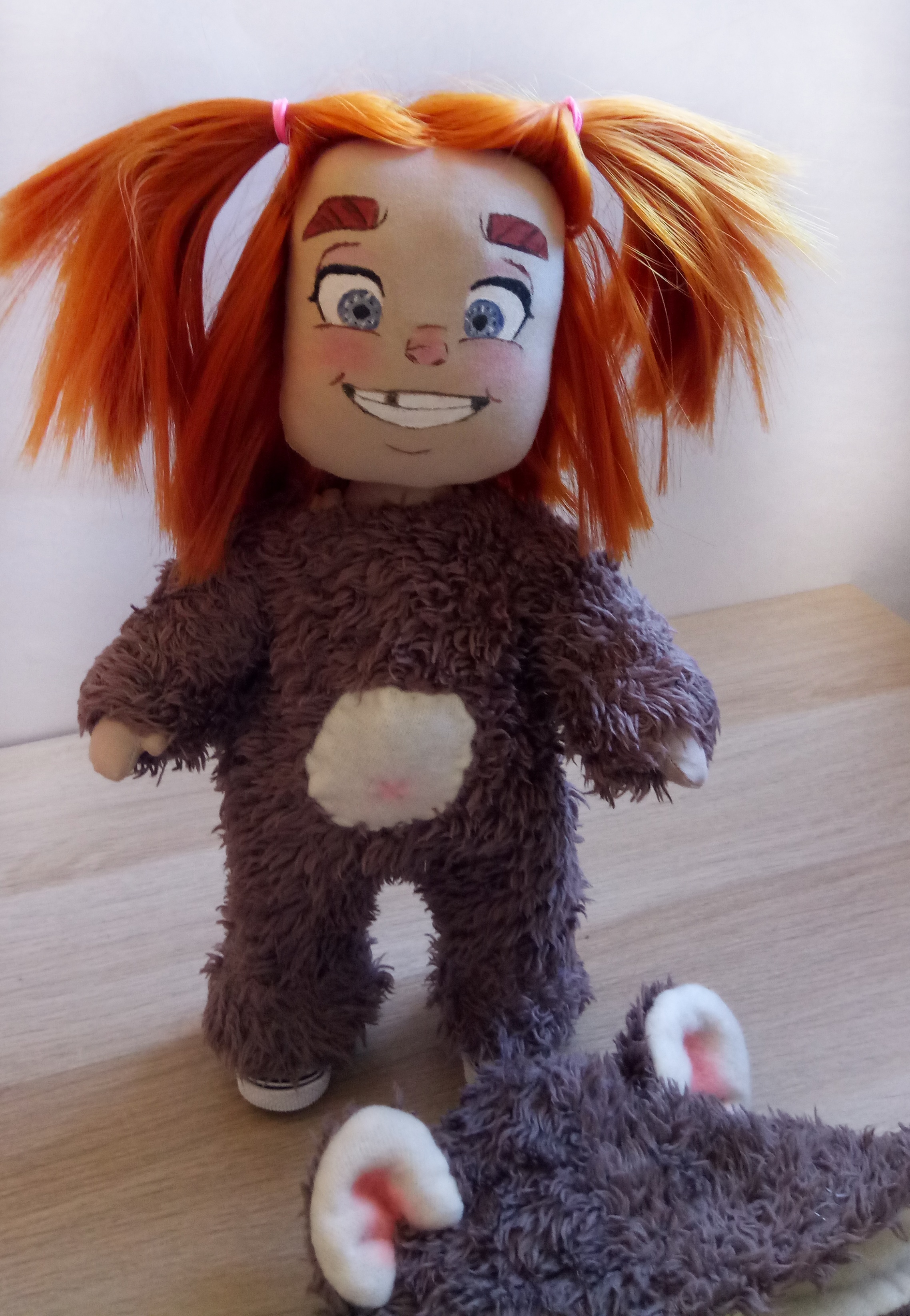 Tym czasem tej wesołej , wiecznie uśmiechniętej laleczce, z wieloma pomysłami na zabawy dziś przebrała się za misia przytulankę w ubranko które można ściągać