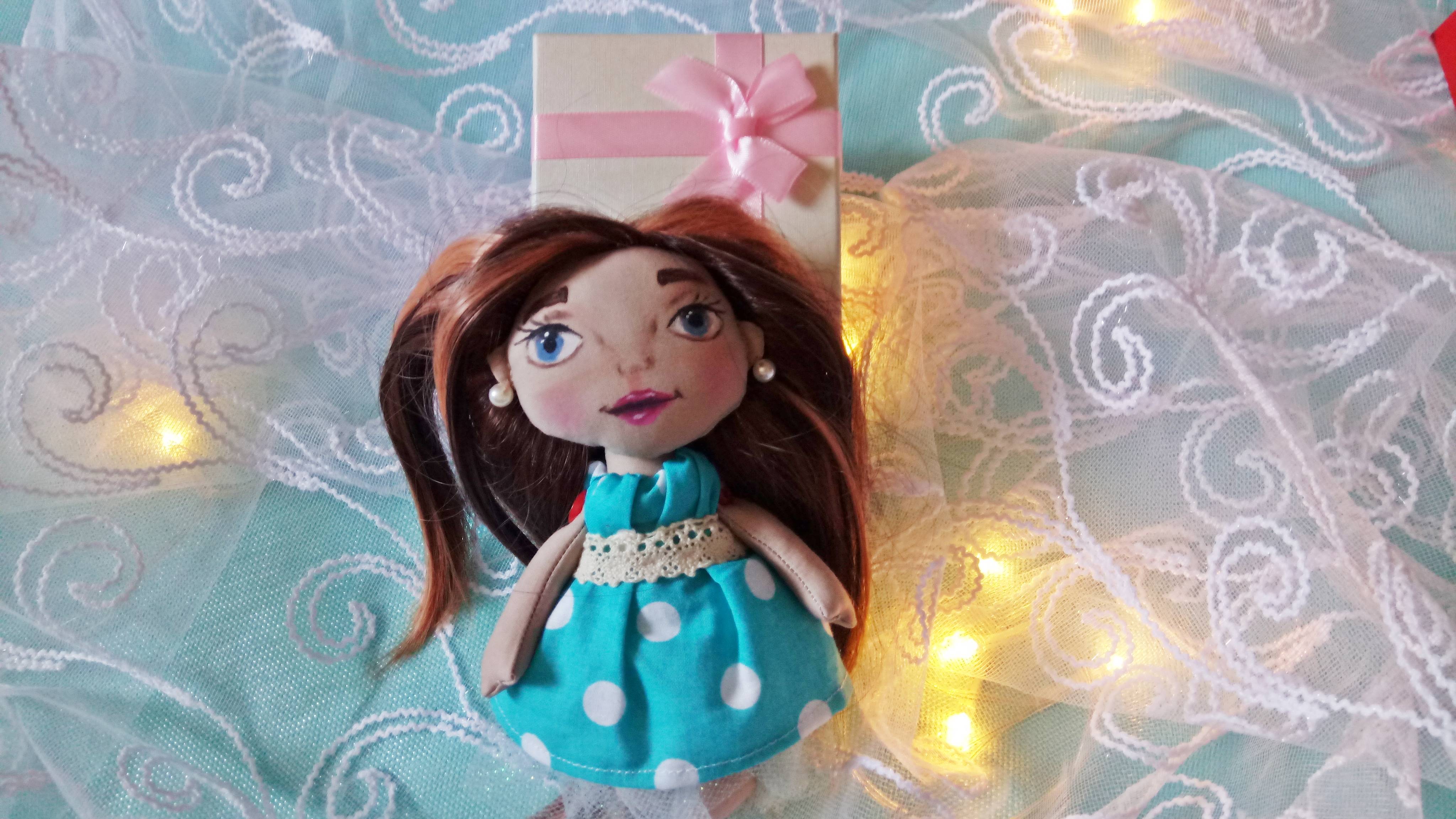 Piękna lalka ręcznie robiona ma około 17 cm wysokości