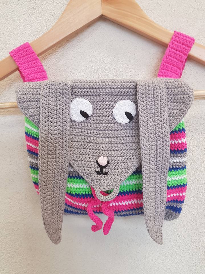 Bardzo kolorowy plecaczek "ZAJĄCZEK" dla maluszka. Wykonany ręcznie z bawełny.