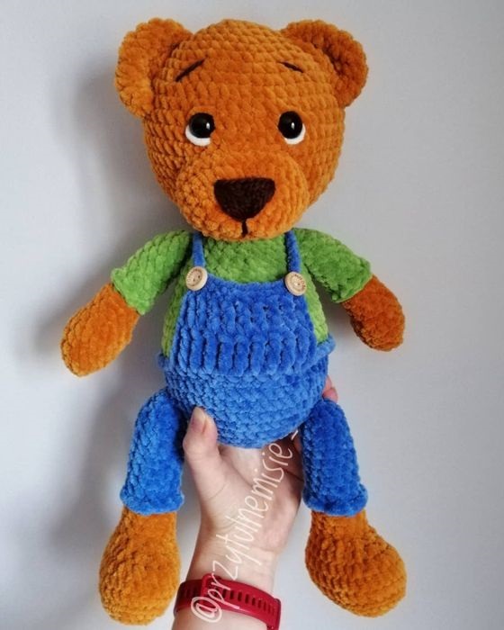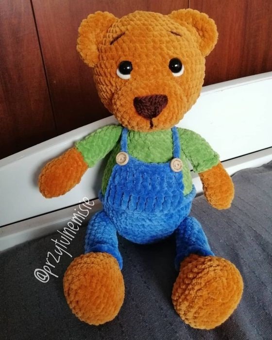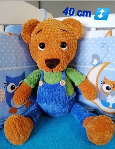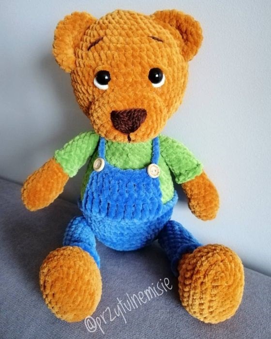 Miś ręcznie robiony na szydełku z włóczki pluszowej.