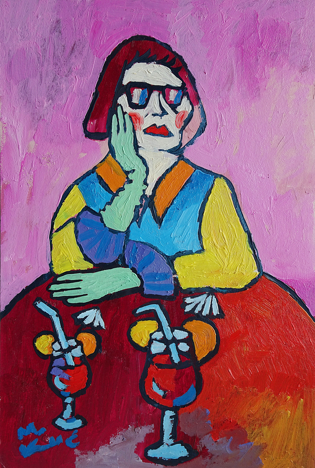 obraz olejny do salonu babcia z drinkami