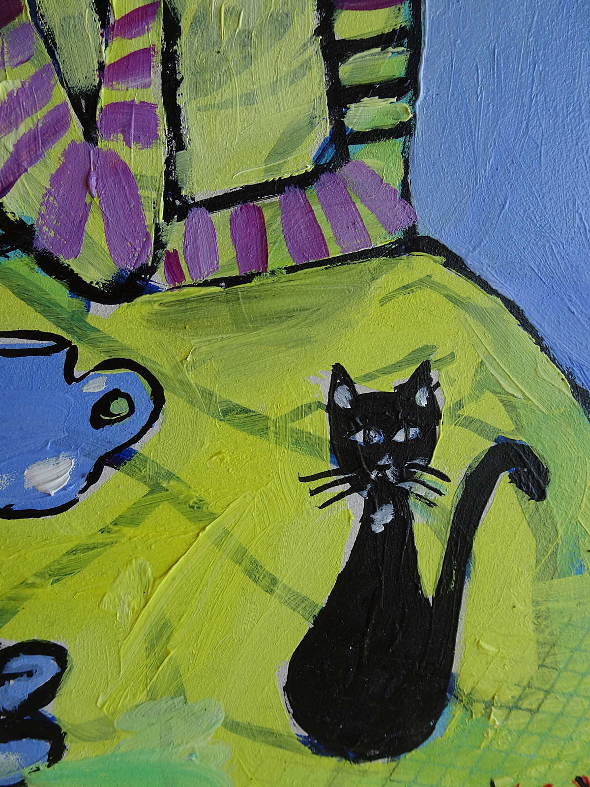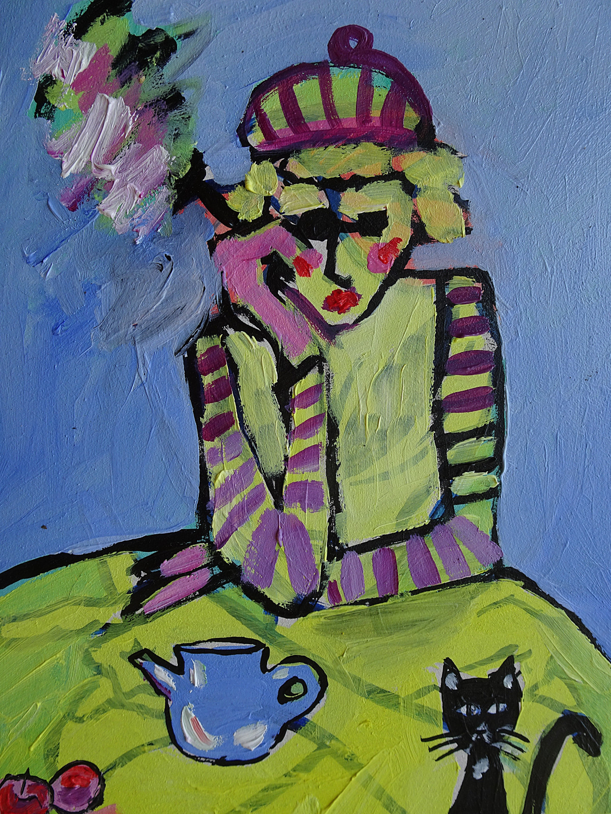 obraz olejny ręcznie malowany dama z papierosem i kotem