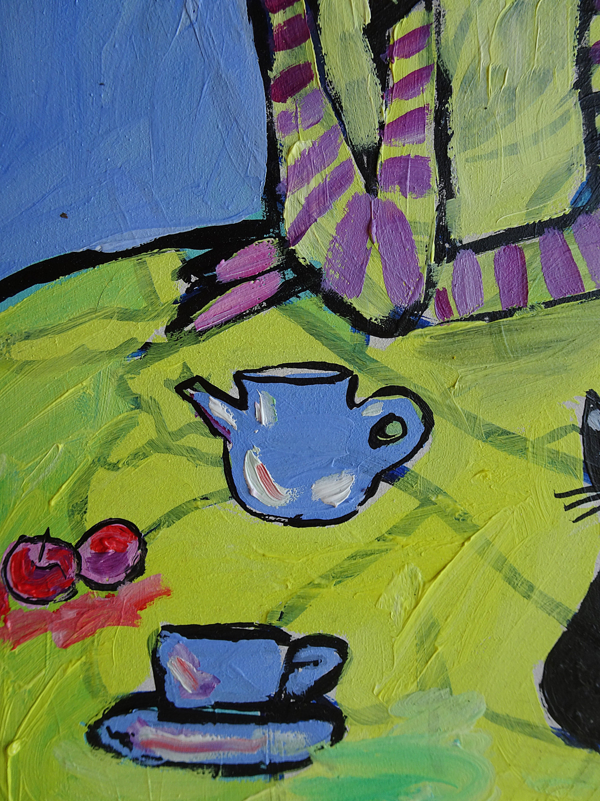 Obraz namalowany olejami na płycie o wymiarach: a4, 21/29,7 cm, sygnowany z przodu. Jest to moja autorska kompozycja. Świetnie może być eksponowany w nowoczesnych wnętrzach o stonowanej kolorystyce. Swoimi barwami może rozjaśnić takie wnętrza, w oświetleniu dziennym, jak i sztucznym.