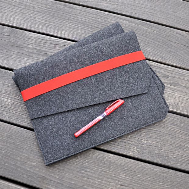 Organizer filcowy na format A4 - grafitowy z czerwoną gumą