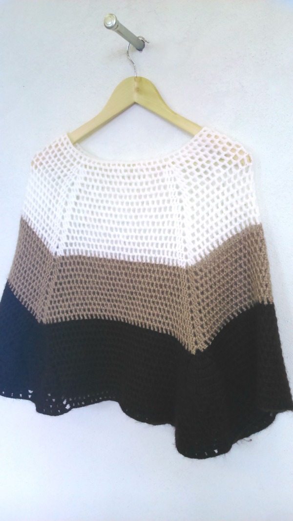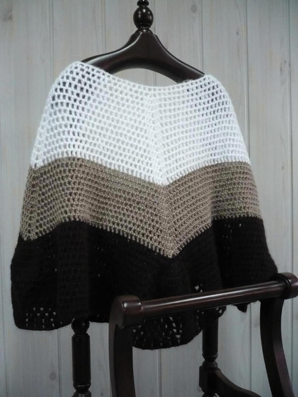 Oryginalne ponczo w kolorze "czekolada+kakao+śmietana". Wykonane ręcznie z wełny z dodatkiem moheru.Świetnie zastąpi żakiet lub sweter.