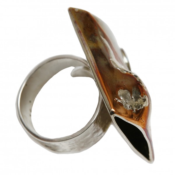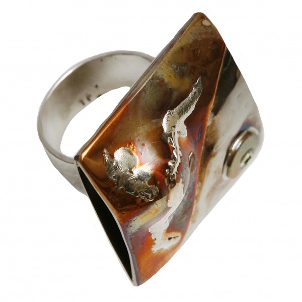 Kolekcja „Fantazje kolorowych metali” to biżuteria autorska, wykonana techniką unikatową, stworzona dla kobiet odważnych lubiących ciekawe, nowoczesne i niepowtarzalne wzornictwo. Pierścionek jest ozdobą zarówno do zwiewnej sukienki, wyszukanego stroju sportowego jak i grubszego sweterka.