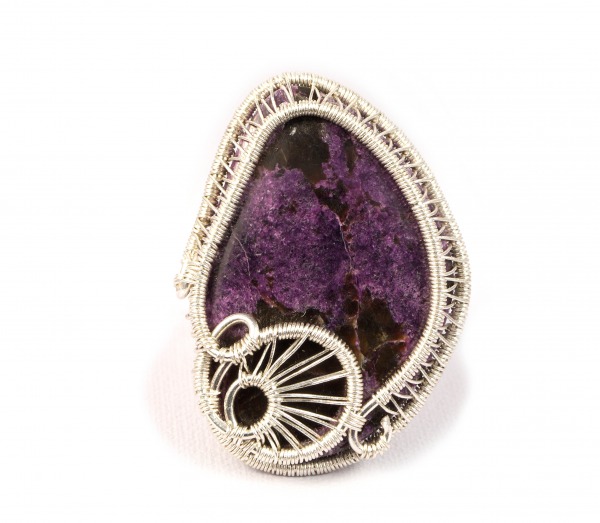Purpuryt, Srebrny pierścionek z purpurytem, regulowany, fiolet, ręcznie wykonany, idealny prezent