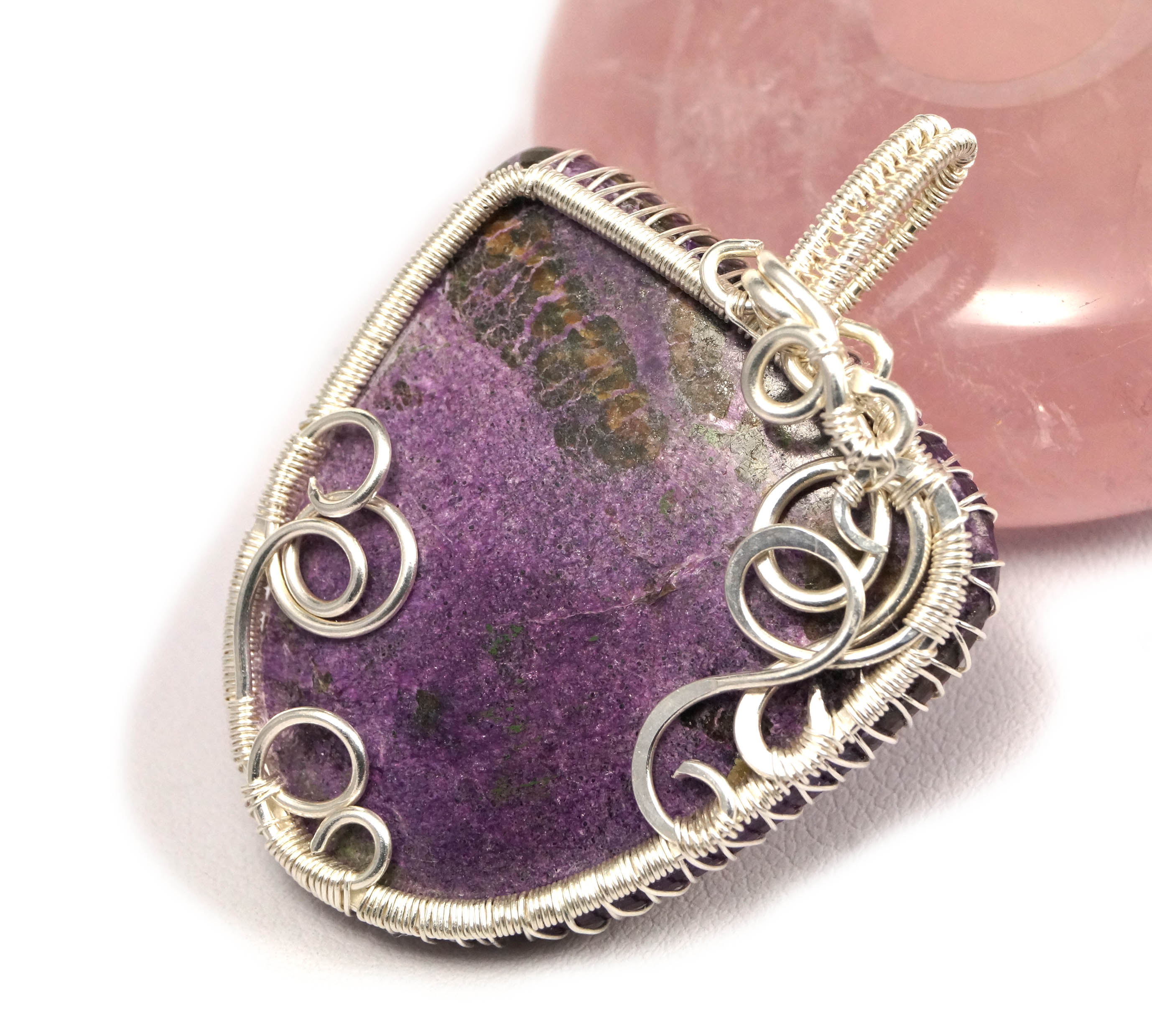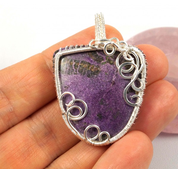 Purpuryt, Srebrny wisior z kaboszonem purpurytu, ręcznie wykonany na prezent dla ukochanej