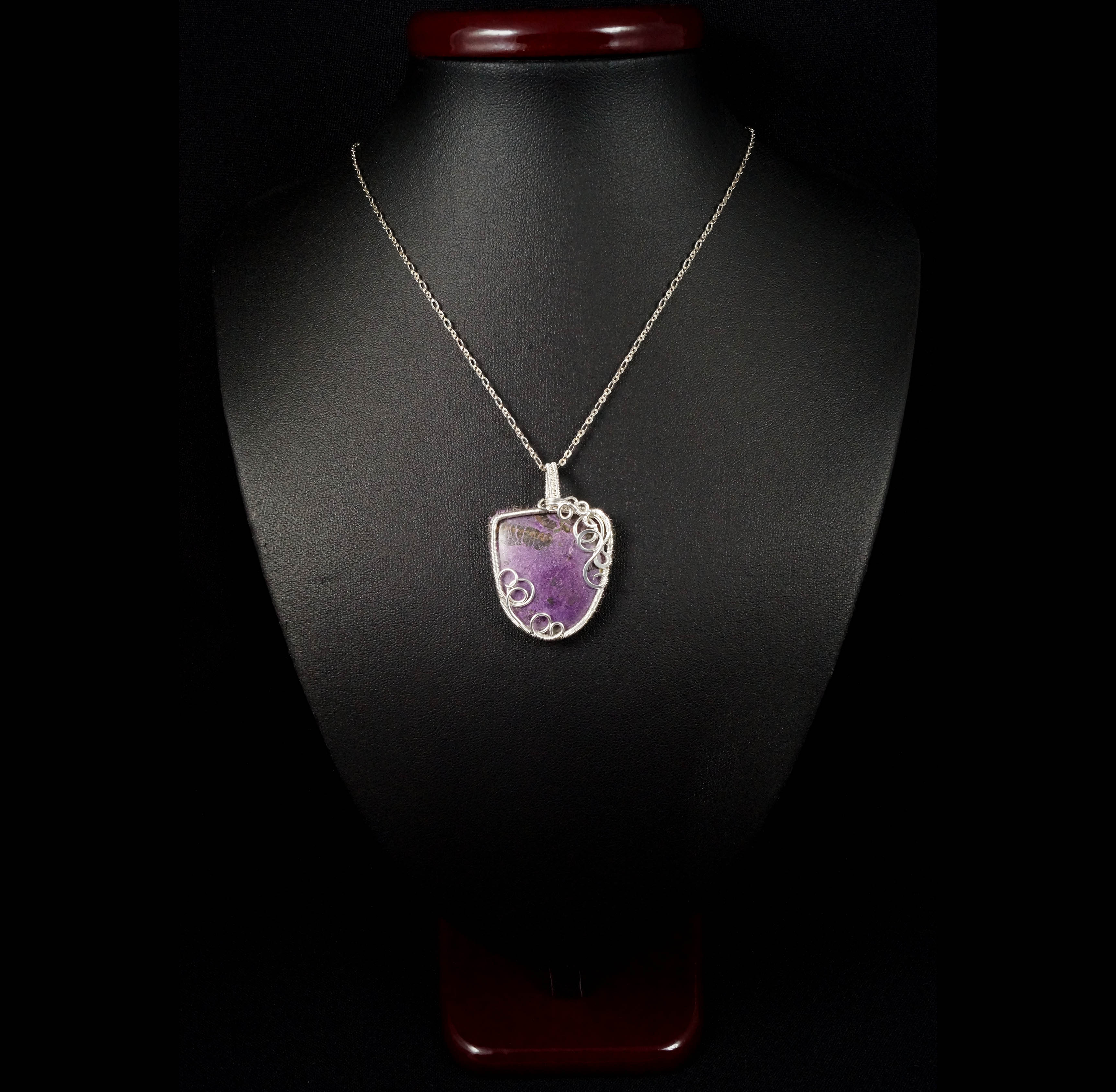 Wisior zaprojektowany i wykonany przeze mnie od podstaw bardzo pracochłonną i precyzyjną techniką wire-wrapping ze srebra próby 925, 930 i 999.