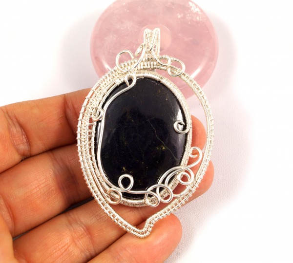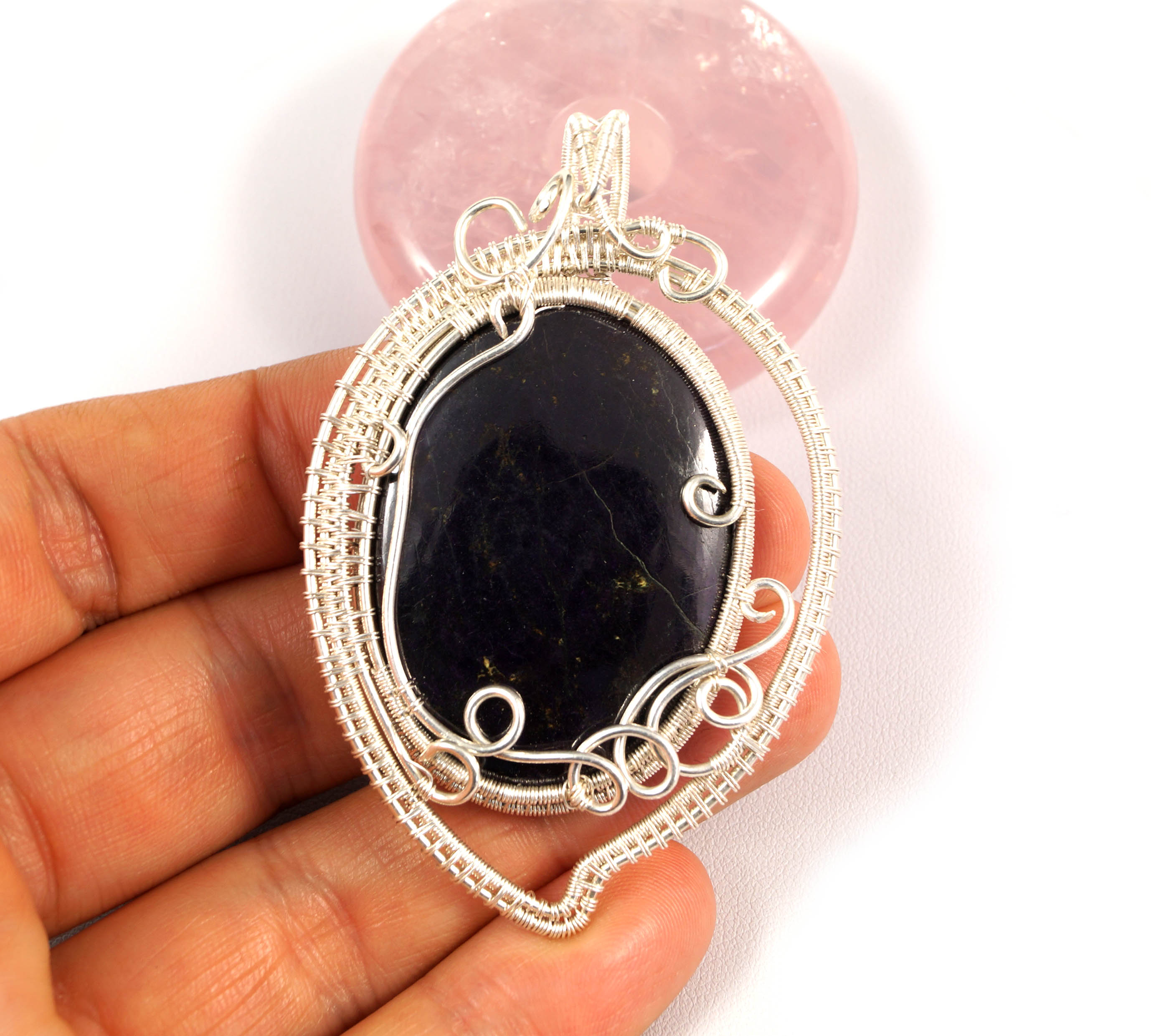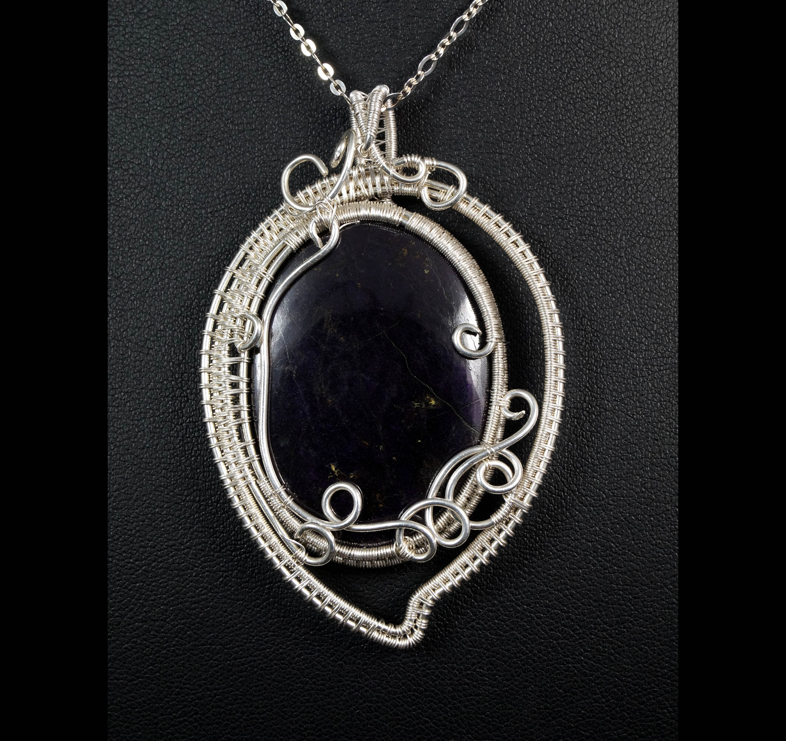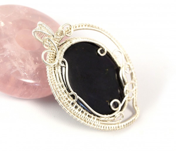 Wisior zaprojektowany i wykonany przeze mnie od podstaw bardzo pracochłonną i precyzyjną techniką wire-wrapping ze srebra próby 925, 930 i 999.