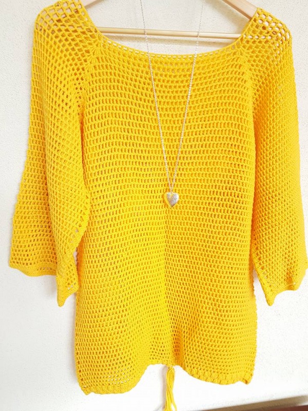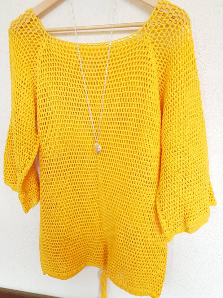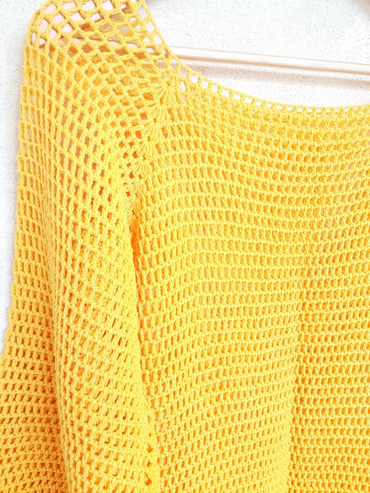 Śliczny i odważny sweterek, ażurowy wzór i mocny żółty kolor to przebój tego lata. Świetny dodatek do różnych stylizacji. Delikatna bawełna. Rozmiar uniwersalny, w zależności czy ma być dopasowany czy luźny.POLECAM!
