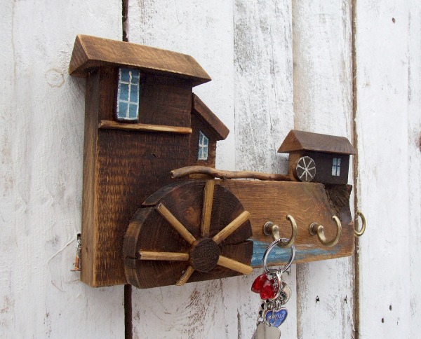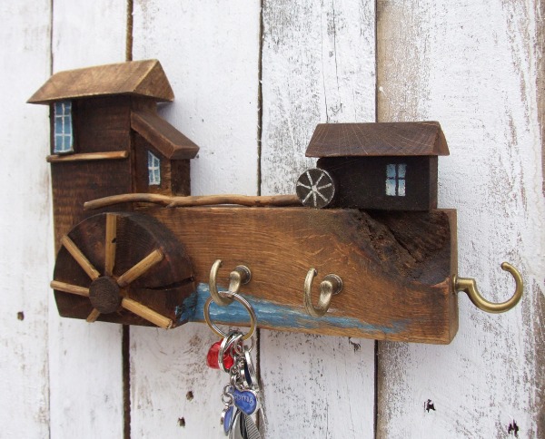 Wieszaczek na klucze z drewna dębowego - Młyn nr 2
