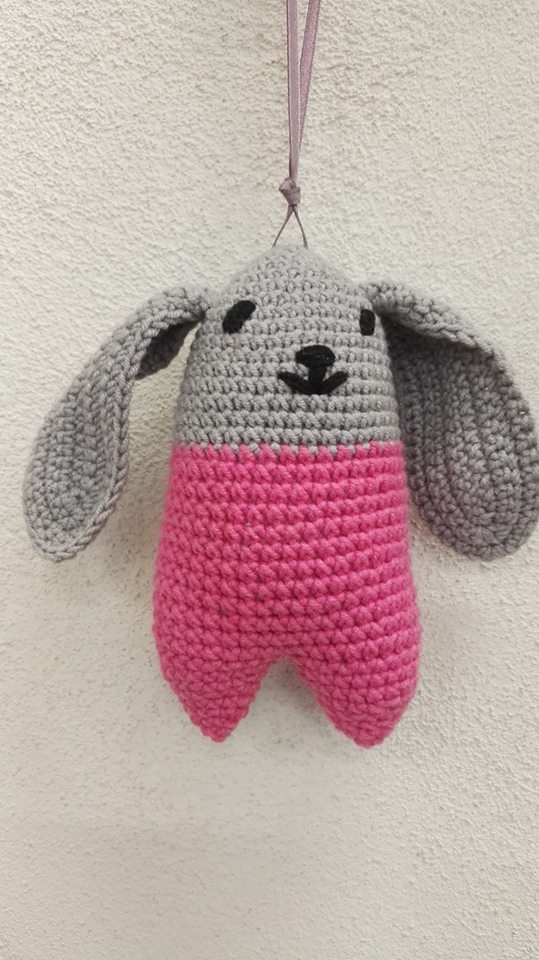 Śliczny ZAJĄCZEK, ręcznie robiony.Wysokość 13 cm + uszy. Bawełna + akryl, wypełnienie kulka silikonowa, antyalergiczna.POLECAM!